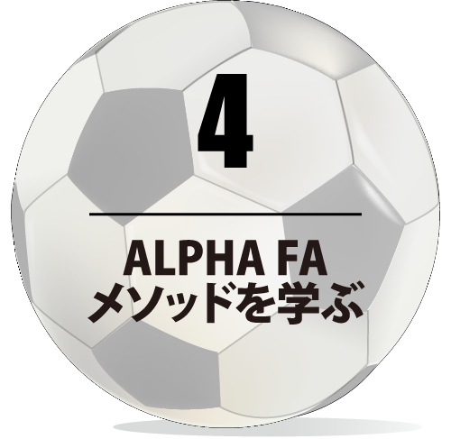 ④東京都心で10年以上、Jリーグ下部組織へ多くの選手を輩出した実績ある「ALPHAメソッド」を学びながら成長することができます。