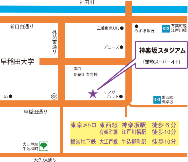 神楽坂のローカルに根付いた立地で、屋内全天候型のため雨天時にも安心して通うことができます!!!