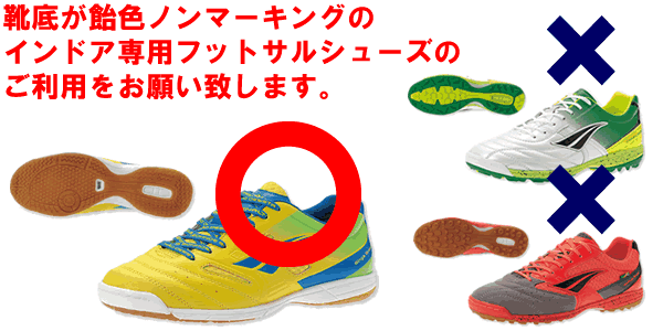 ご入会の際は、必ず、上記指定のフットサルシューズをご用意ください。